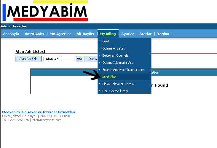 Devam et butonuna tıkladıktan sonra yüklemiş olduğunuz kredi hesabınıza otomatik aktarılmış olacaktır daha sonra domaın register işlemlerini gerçekleştirebilirsiniz