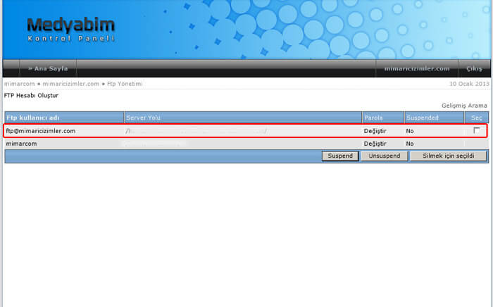 FTP hesabınıza sorunsuz bir biçimde bağlandığınızda karşınızda gözüken dizinler sizin web sitenizin yayınlama dizinleridir.